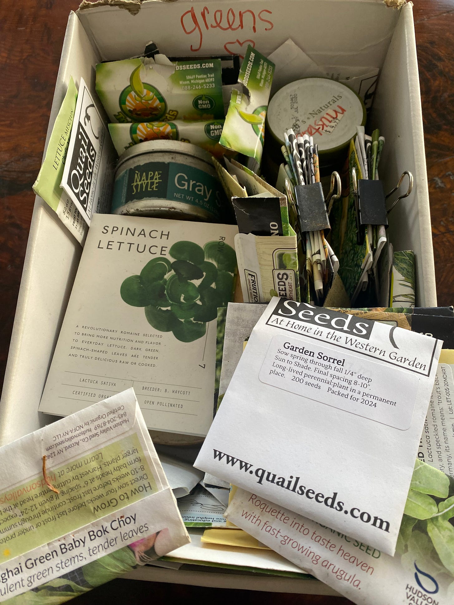 It’s 12F outside this morning, but never too early to review our collection of cool-weather spring greens. I just ordered lots more from Wild Garden Seed, a favorite purveyor.