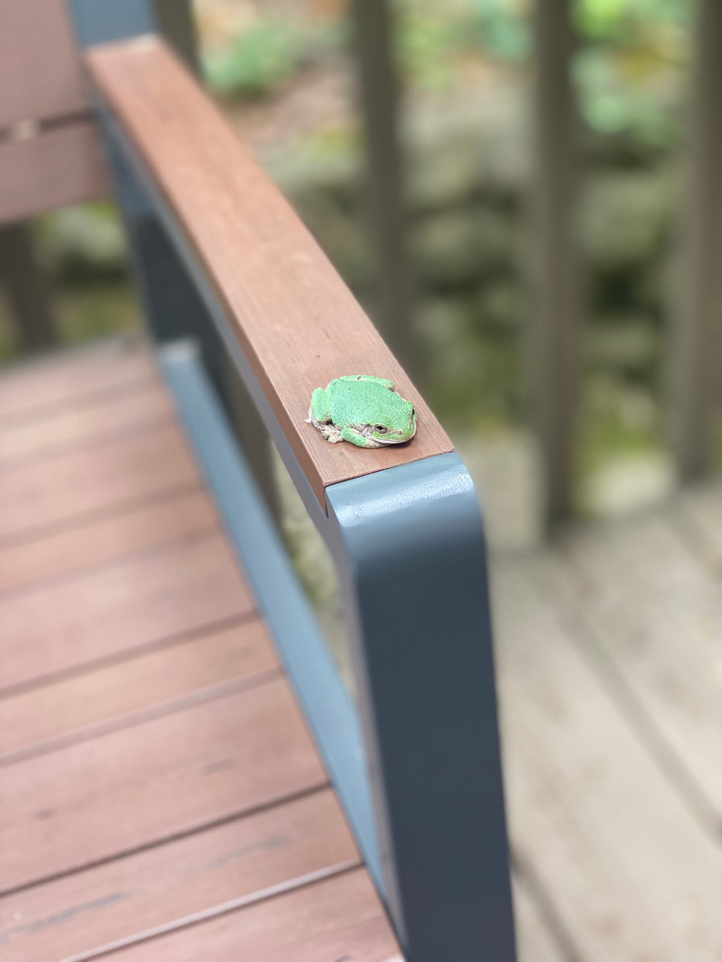 We had a plethora of tree frogs last summer, sweet little green beings who came to visit up on the deck. One of them even traveled into the kitchen undetected on the bread plate.